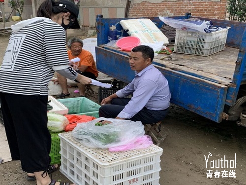 团队成员对于青岛市合众民生农贸市场当前农产品滞销现状以及新型销售渠道、手段的接受程度有了初步了解。为保证调研的完整性以及信息的广泛性,团队成员来到了靠近市场的个体农户所在处,与他们展开深入讨论。队员通过了解得知,今年疫情下不少个体农户种植的农产品也面临着滞销的挑战,部分农户通过微信、QQ等一系列社交平台进行近距离的“线上销售,线下配送”的模式取得了较为可观的效果,这无疑也是对滞销农产品销售一种有利的借鉴。