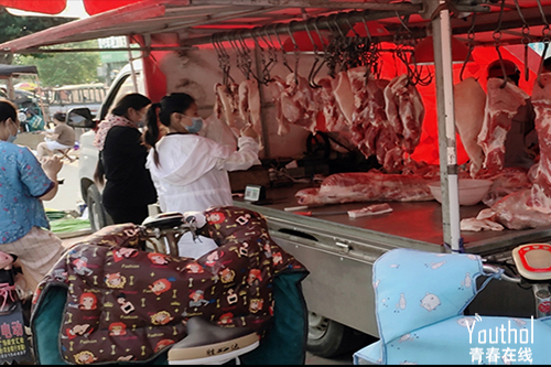 黄歆璐对集市猪肉摊摊主进行简单地采访调研,据摊主回答,由于疫情期间集市管控严格,他无法摆摊售卖猪肉,导致囤积的猪肉供过于求,大量腐败变质,甚至需要被迫销毁,这就造成大量亏损。但随着复工复产的逐渐放开,集市开始允许正常摆摊,猪肉也作为生活必需品受到大量购置需求,猪肉价格相对稳定甚至有增长趋势,他逐渐营利,现已走出亏本境地。