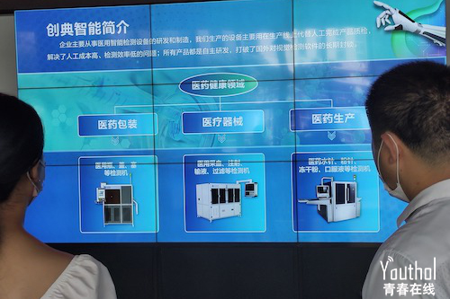 调研开始,团队成员与公司负责人刘初阳会面,他在对团队成员表示欢迎后,开始对公司进行介绍。他说道,山东创典智能科技有限公司致力于打造医药行业国际一流的视觉专业解决方案,公司主要负责医药包装以及医药和医疗器械的生产,其中医药包装视觉自动检测机占行业领先地位。