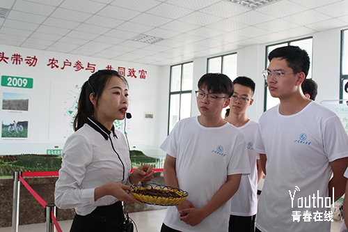 上午,实践团队来到司马光油茶园,在联兴油茶公司展厅,讲解员为团队成员介绍了当地油茶产业的发展历史和油茶产业的地域分布,以及“政府引导,龙头带动,农户参与,共同致富”的脱贫发展之路。