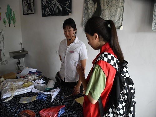 实践团成员参观了影视基地设置的红色研学点,体验做豆腐、摊煎饼、手工扎染等特色项目,木制长枪、锣鼓、小推石磨等研学旅行道具,重走先辈的“红色印迹”。借助展墙图片、文字图板、展柜文物等展陈手段,全面展示革命岁月沂蒙红嫂“用小米供养了革命,用小车把革命推过了长江”的辛劳点滴。让观众以“剧中人”而非“旁观者”的视角体验红色故事,建立起“时代同理心”。