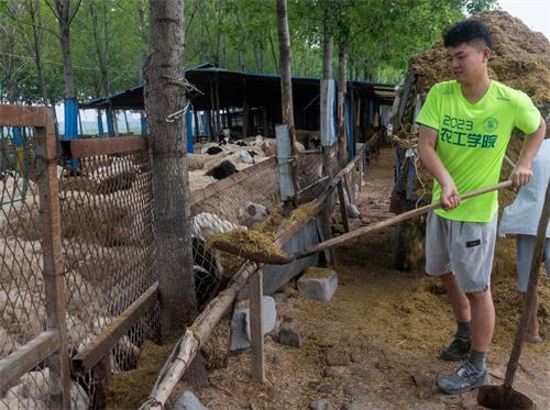 在展开工作之前,老大爷耐心地教给实践团成员如何喂养牛羊及如何铲除牛粪,并提醒实践团成员注意安全。实践团成员们认真听讲,细心观察,活学活用。随后实践团成员边有条不紊的开展养殖体验工作:为牛羊补充饲料、清理牛粪等。其中实践团成员袁升阳表示:“在家几乎没碰过这种活,也算是第一次与牲口‘亲密接触’,这应该就是习总书记口中所说的“自找苦吃”吧,不过苦尽甘来的滋味真的很甜”。