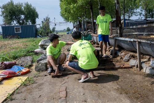 发家致富,先修路,路通畅,农家富。羊圈旁的道路是泥土路,每到雨季便会给羊的养殖带来极大的困难,实践团成员看到这种情况,决定为羊圈铺设一条新路。成员们将路标废弃的砖头移到此地,用废弃的砖头铺设出一条平坦的新路。有了这条新路,以后下雨便不会再变得泥泞,也给羊的养殖带来极大的便利。养殖工作人员看到铺设的这条新路后,工作人员也对这项成果表示了极大肯定。