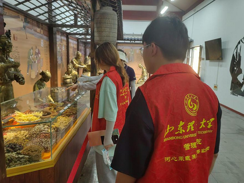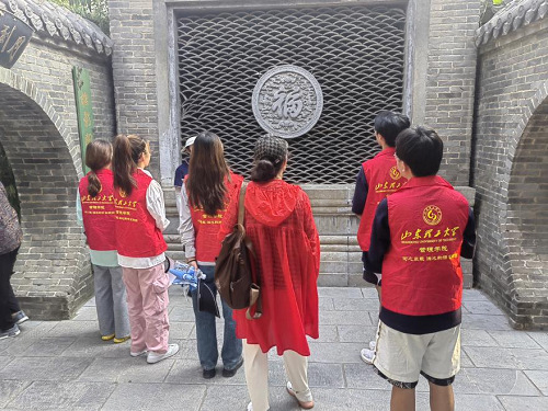 讲解员首先为团队成员介绍影视剧《大宅门》的主要拍摄地点——东阿阿胶城,阿胶城内影视剧拍摄所用到的道具仍保留在阿胶城内以便游客参观。讲解员带领社会实践团参观白家大院,仔细介绍白家大院内三个厢房的由来、用处和意义,社会实践团成员认真听讲并提出问题以更加了解其中的涵义。实践团了解到,白家大院代表了中国古代家族文化的繁荣和辉煌,也是阿胶文化传承的一个重要载体。