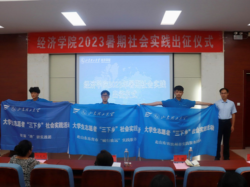 (据经济学院报道)为深入学习贯彻习近平新时代中国特色社会主义思想,推动深入落实“时代新人铸魂工程”,引导和帮助广大青年学生上好与现实相结合的“大思政课”,7月13日下午,山东理工大学经济学院在东校区四号教学楼二楼报告厅举行经济学院2023年暑假社会实践出征仪式,仪式由经济学院辅导员赵星主持,校团委书记王振、经济学院党委副书记戴洁、经济学院团委书记孙兆风、校团委实践部邱先慧出席,“碱”行致远实践团代表李钰琳、戚岩参与。