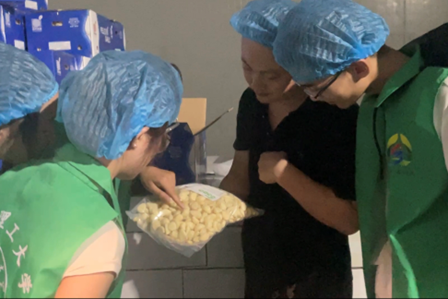 随后实践团成员们来到鼎昱农贸有限公司的加工车间,工作人员向成员们详细介绍了加工车间的工艺流程和操作技巧。实践团成员们观察了去皮设备的运作,清晰地了解了去皮过程的自动化和高效性。工作人员向实践团成员们介绍了大蒜的分级和包装工序。并且实践团成员学习了大蒜的包装工艺。他们认识到,现代化的加工设备和流程能够提高生产效率、确保产品质量,并满足市场的多样化需求。实践团成员们表示,将会将所学所见应用于实践,并积极为金乡大蒜产业的发展贡献自己的力量。