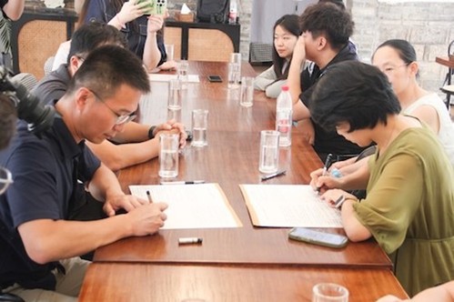 随后,李璐向山头镇街道办事处对实践团任务过程中的大力支持表示衷心感谢,并祝愿博山陶瓷琉璃文化主题旅游越做越好。交谈结束后,李璐、于明湖、张毅文共同签署协议,为实践基地揭牌,并合影留念。