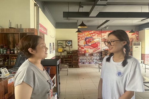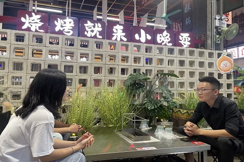 沿水晶街到达王牌烧烤,除常规问题外,实践团成员更了解到店家社会援助特色经验。因客流量大,店面负担过重,社会志愿者服务队与大学生钟点工尽其所能分担店面压力。店家更推出大学生优惠,使赴淄赶考的大学生们感受到淄博人的热情,更是以这种方式回报社会给予的援助。