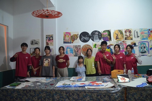 7月15日下午,实践团再次来到“希望”艺术培训中心,正式开展为当地儿童举办的支教活动。为了使孩子们快速了解认识到此次活动主题,实践团成员首先为孩子们讲述了大禹治水的经典故事。随后孩子们在实践团成员的指导下,开始绘制“大禹治水红船精神”插画。