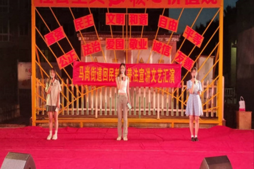 文运牵国运,文脉连国脉。为促进文化产业的发展,扩大普法宣传效果,7月17日,实践团成员来到回民新村,开展普法宣讲文艺汇演。以《爱我中华》为汇演开头,《没有共产党就没有新中国》做结尾,《国家》在中,经典吕剧片段、流行歌曲等相穿插,精彩纷呈。一首戏曲版《青花瓷》,将传统戏曲与流行唱法相结合,搭配传统乐器葫芦丝,正是巧借创新活水,为文化赋能,拂去历史尘埃,在传承中创新,在传承中发展。本场演出形式新颖,采用人民群众喜闻乐见的宣传方式,内容丰富,生动地展现出新时代的价值观。通过此次汇演,社区居民的心连在了一起、情聚在了一起,同时让新时代文化“接地气”,让文明新风的种子,在居民心中生根、发芽、开花。