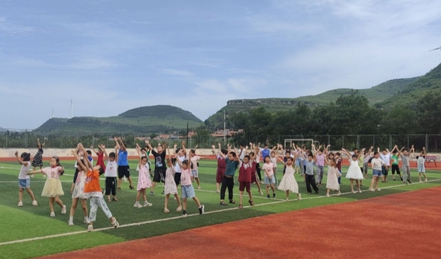 (据外国语学院报道)为深入贯彻体教融合理念,构建德智体美劳全面培养的教育体系,7月18日,外国语学院“蒲公英”社会实践团秉持“健康第一”的方针,开设篮球、羽毛球等体育课程,组织“跳大绳”“丢手绢”等娱乐游戏,丰富村镇学校体育,帮助学生在体育锻炼中享受乐趣、增强体质、健全人格、锤炼意志,南流泉完全小学全体学生参加。
