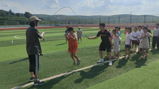 除传统的体育项目,实践团成员还组织了“跳大绳”“丢手绢”等特色活动充实学生课外时间。在这些活动中,学生们用灵活的身姿和快速的速度展现了自己的技巧,每个人都尽情释放了自己的活力,在游戏中促进了体能发展、认知发展以及情感发展。