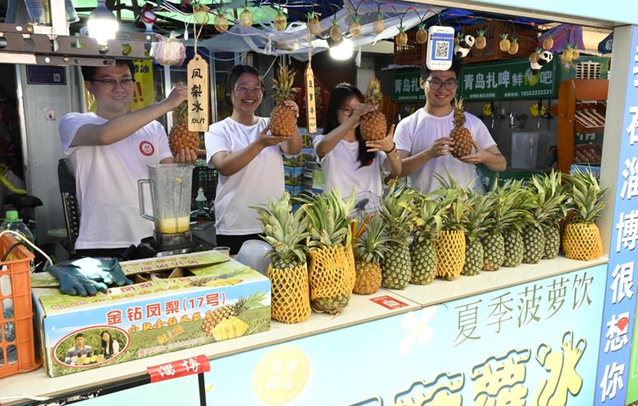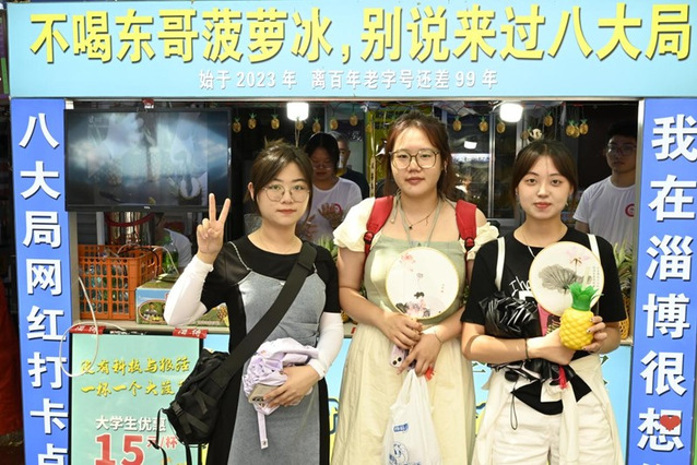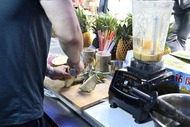 (据化学化工学院报道)为教育引导学生崇尚劳动、尊重劳动、热爱劳动,7月18日上午,山东理工大学“人生三部曲”社会实践团在指导老师的带领下,前往淄博市张店区八大局便民市场,开展网红店东哥菠萝冰劳动体验活动。