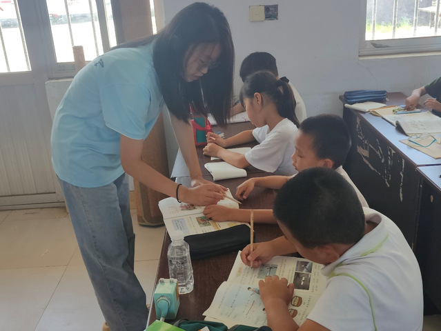 自实践团队的支教方针中获悉,该活动在辅导孩子们的课余作业的同时,更深挖其蕴藏的学习兴趣,以便在今后的学习道路上越走越远。活动开始前,实践队负责人吴含首先安排小组任务,让队员为学生布置周末作业,以便顺利进行课业辅导。