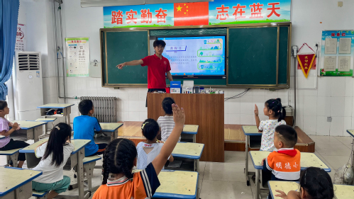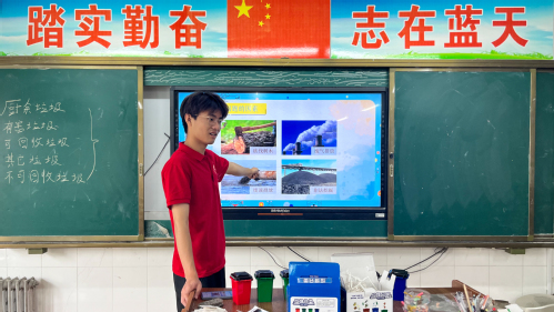 在普及垃圾分类课堂上,实践团成员杨召珍向学生讲解垃圾分类知识并通过生动直观的图片以及实际案例详细讲解“如何进行垃圾分类以及怎么分类”和“分类后如何处理”等相关问题,引导学生分辨出“可回收物”和“不可回收物”及相应垃圾桶,进一步提高学生生活垃圾分类意识;同时杨召珍以寓教于乐的方式 与学生进行互动问答,学生积极互动,面对一系列有关垃圾分类的问题,他们不仅踊跃举手而且对答如流,展现出了对环境保护浓厚的兴趣和良好的认知,此外杨召珍呼吁学生参与到垃圾分类中去,鼓励学生将自己废旧物品收集至垃圾回收驿站,引导学生树立绿色回收理念。