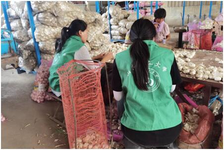 首先实践团成员向大蒜加工厂内零工阿姨进行大蒜加工包装相关调研,零工阿姨表示,再进行工作之前公司都会组织培训,使零工阿姨们能够真正掌握大蒜包装技术,公司认真负责的态度也促进了零工阿姨掌握大蒜包装技术,零工阿姨表示即使以后会换工作,但掌握了一门技术就会扩大其就业领域。他们不必只在家种植农田,还可以进入工厂工作。随后实践团成员亲身体验了大蒜加工包装,在零工阿姨的指导下,实践团完成了部分大蒜的包装,深刻的体会到了打算包装过程中的专业、干净。