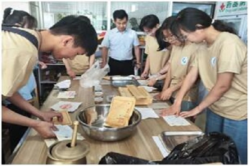 “道地磐五味,健康千万家。”在药剂科药剂师的带领下,实践团参观了门诊药房(兼病房药房)、中药房、中药煎药室、制剂室、药库等部门,并详细了解了每一味药材的外形、性味、作用及功效:大黄主治泻热毒,破积滞,行瘀血;杜仲有补益肝肾、强筋壮骨、调理冲任、固经安胎的功效……乐于发现身边之美的药剂师们利用常见的药材制作了一份药材标本以便于向患者详细讲解,展示中医药文化的魅力。