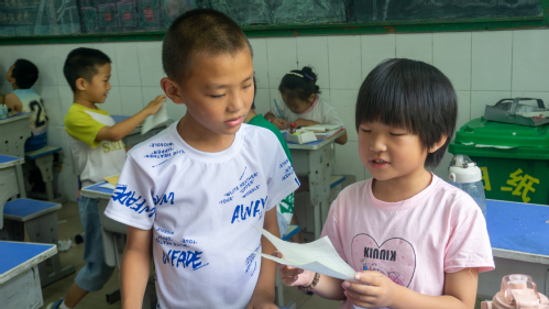 讲课期间,实践团成员组织“写出对方优点”互动环节,学生两两分组,发现并写下对方优点,而后大声念给对方听,通过有针对性的赞赏和夸奖,增强学生自信心,让学生肯定自己的优点,以积极的态度看待问题,正视生活中一切事物,从中汲取正能量。