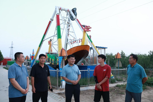 正值实践团成员在墙壁上挥洒汗水和颜料之际,禹城市梁家镇党委副书记、镇长朱英开,梁家镇人大副主席、桂庄村党支部书记杨文杰带领禹城市电视台工作人员来到实践团工作地点进行视察和采访。朱英开首先对实践团十几天以来的实践工作表达了极大的肯定,将实践团成员所设计的墙绘比喻为“时代的新浪”,这股“新浪”给桂庄村带来了一道靓丽的“青春煦美之风”的风景,促进了桂庄村欣欣向荣、蒸蒸日上的发展面貌。