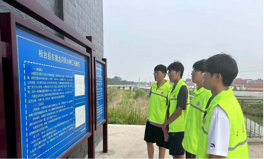 实践开始后,护“黄”有我团队成员在崔家排涝泵站进行参观。针对实践团队提出关于东猪龙河尾水闸修建目的如、何运作等问题,水利局指导人员进行详细讲解,指出东猪龙河尾水闸在蓄淡、抗洪、排涝等方面有着重要的意义,并能在汛期有效控制下游的泄流量,从而使村庄免受洪涝灾害影响。