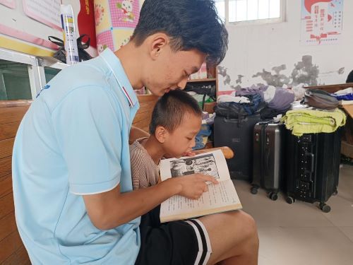 (据电气与电子工程学院报道)为了培养孩子们的阅读兴趣,拓宽孩子们的视野,进一步提高个人素质,丰富孩子们的假期生活,7月23日下午,“四叶草”暑假社会实践团日照实践小组于五莲县洪凝街道李家沟村开展了一场以“腹有诗书气自华,最是书香能致远”为主题的图书角活动。此次活动由实践小组成员邴广硕主持。