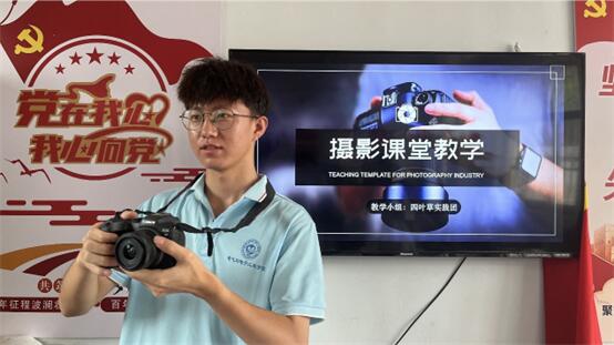 活动伊始,实践小组成员王志勋“怎么拍、怎么拍得美、什么才是拍得美”等角度为孩子们进行了通俗易懂的讲解。王志勋围绕人像、光影、风景等不同拍摄主题,从如何选取拍摄角度、调光、配色、构图等方面,通过让孩子们观赏自己所摄作品及现场实操教学的形式,由浅入深地为孩子们讲解了相应的摄影知识,详细解读如何拍才能达到更好的效果,让拍摄作品更加出彩。