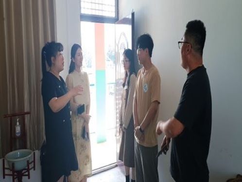 紧接着,在鲁西新区团委团委干事张游昌老师带领下分别来到了志愿者男生女生宿舍以及办公室等工作和生活地点,对志愿者住宿和生活环境进行考察。团队成员在留意宿舍环境整洁度、舒适度的同时,也更好地理解他们的生活背景和挑战。致力于了解并解决志愿者在生活环境上存在的疑虑,听取了志愿者的诉求。