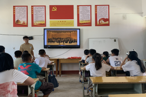 不仅如此,我们不单单讲述红色文化的历史,也涵盖了红色艺术,包括红色书画、红色音乐和红色戏剧等。我们挑选了相关资料,让孩子们研究和欣赏相关艺术作品,了解这些作品所传递的红色主题和精神内涵。譬如国歌的创作过程、诗词蕴含的深意等等,志愿者通过视频与讲解有机结合的方式授课,让孩子们更好地理解红色文化。