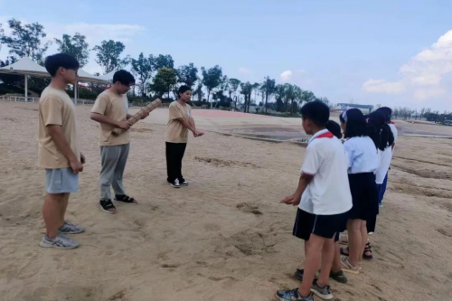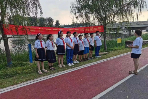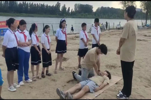 随后小荷学堂暑期社会实践的志愿者们,带领孩子们,认识公园附近的警示标志,为孩子们讲解救生主干的使用方法及注意事项。之后我们又带领着孩子们去万福河沙滩主题公园,由志愿者宁红娟为孩子们讲解如果发现有人溺水该如何去做、溺水后该如何施救等安全常识,教导孩子们要具有安全意识,并现场教学了孩子们溺水后紧急施救的方法。