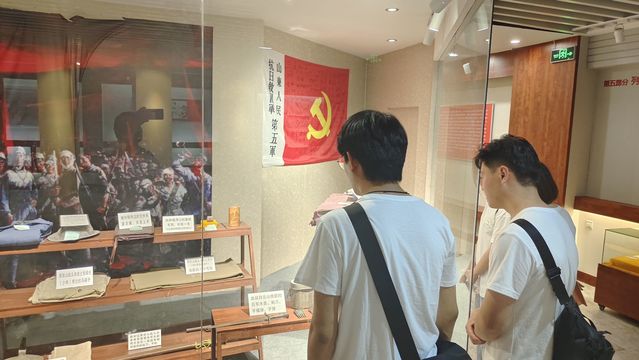 百余名抗日志士,三支步枪、八把马刀,高举义旗,歃血抗敌,用信仰和忠诚践行了天下兴亡、匹夫有责的爱国情怀。展览中展示的照片、文字和音频资料真实地再现了那段艰苦卓越的历史。怀揣着对英烈的崇高敬意,我们面对党旗庄严宣誓,每个人都喊出了铿锵有力的誓言,也喊出了愿为中华民族伟大复兴牺牲一切的壮志。
