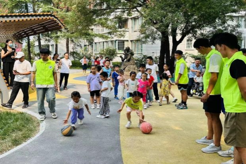 活动在欢声笑语中开始,志愿者通过篮球项目依次开展热身活动,课堂游戏,放松小结,引导小朋友们运动前做好热身活动,调动学习的积极性。随后,小朋友们运传球接力小游戏体验运球姿势,以及体会篮球项目团结协作的体育精神,快乐跳跳绳让小朋友们在体育项目中,找到运动的乐趣,从而收获了进步与快乐。