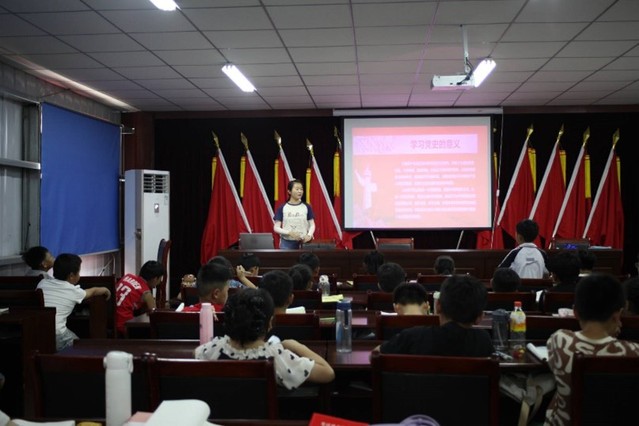 实践小组成员首先安排学生们填写了“关于学生思政学习情况”调查问卷。据统计,约有超过半数的同学不会唱国歌,增强孩子们爱国情感迫在眉睫。为了让孩子们更好的了解红色知识,了解中国共产党的发展历程以及党成立的意义,小组组长郭美清为孩子们上了第一节思政课,主题是党史。