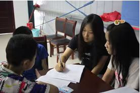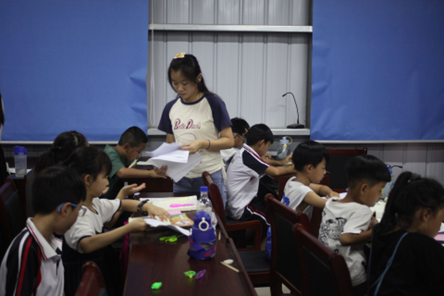 课程结束后,实践小组成员共同辅导孩子们学习,让孩子们做自己的暑假作业,我们为学习上有问题和困难的学生提供及时的解答和帮助。大部分学生在学习时间专注认真,安静做题。我们还会观察哪位同学迟迟不肯动笔,却不找老师,我们猜测是不好意思问题,这种情况也会主动去询问他们需不需要帮助。课间,我们参与到孩子们的娱乐项目之中,努力成为一个合格的陪伴者,聆听者,了解了一部分同学的情况,有个别小朋友甚至和我们说了他的秘密。我们能感受到孩子们越来越信任我们,这令实践小组成员十分开心。