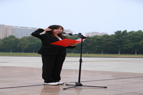青年学生代表、学院学生会主席团成员张文璇带领全体学生宣誓,重温入团誓词。面对团旗,在场学生神情庄重,精神昂扬。誓词铿锵,同学们右手握拳许下的不仅是青春的誓言,更是对初心的坚守和对使命的担当。