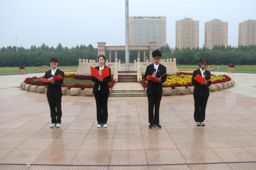 仪式最后,青年学生代表王岳、宋冠霖、胡希源、孙铭蕾表带来主题朗诵《祖国啊,我的祖国》。他们以美丽动人的语言和深情真挚的感情讴歌了正在奋进的伟大祖国,表达了对祖国的赞美和崇敬之情。