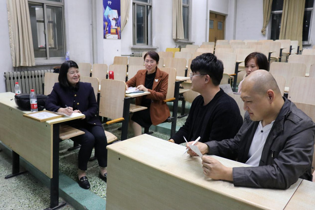 课后,贾玉洁,鞠志慧与王维刚等人一同讨论了商务相关的人才培养方案。