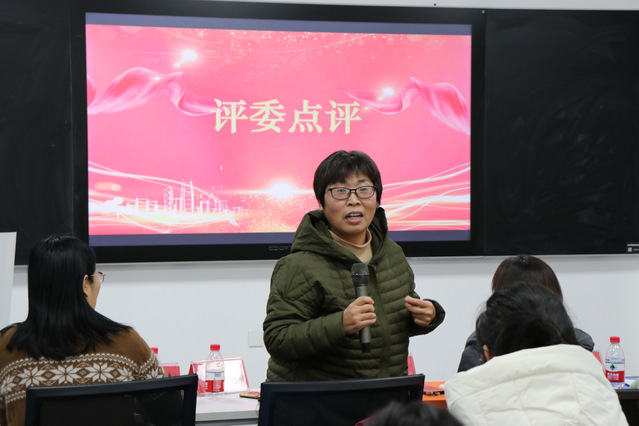 蒲珊珊肯定了选手在比赛中的优良表现,同时也指出部分选手存在材料挖掘不够,时长较短,作业布置未呼应主题等问题,并表达了对参赛选手未来承担起教师教书育人职责的期许。李金凤重点强调了板书设计和书写的相关问题。