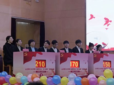 (据文学与新闻传播学院报道)12月11日晚7点,山东理工大学第三届研究生“学习强国”答题挑战赛团队赛决赛在三号报告厅顺利举行。此次比赛由山东理工大学研究生工作部主办,校研究生会协办。文学与新闻传播学院研究生迟静、李媛媛、赵薇清组成代表队参加决赛,荣获团体赛决赛二等奖。