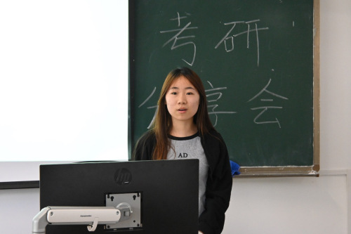 分享会上,六名学生代表结合自身经历,分别从考研择校、备考过程等方面向参会人员讲解经验。她们就考研材料选取、考前时间分配、考研信息的获得渠道、专业课与政治课复习、心态调整等具体细节与大家进行了深入交流。她们建议,在择校过程中,要结合实际情况选择目标专业与院校,着重关注目标院校资讯,打破信息壁垒;在备考过程中,要制定切实可行的备考计划表,合理规划备考时间。其中,李庆梅把备考过程比作为“摸着石头过河”,鼓励学生在摸索中找到适合自己的备考方法,她强调备考关键在于把握学习时间,同时要端正心态,拒绝过度焦虑。