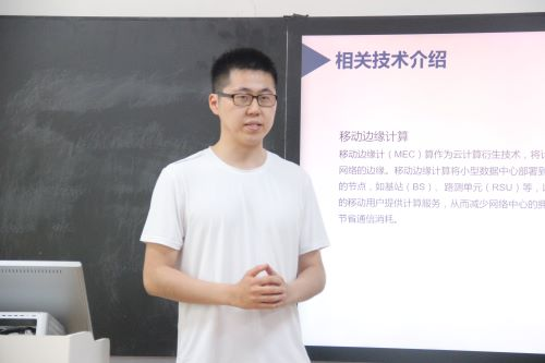 随后,孙亦珑作了题为“基于云边缘计算的车辆任务卸载与工作调度方法”的学术报告。孙亦珑详细介绍了论文的研究意义、研究方法以及对比实验的结果等内容。同时,他对论文写作与发表等问题分享了自身经验。