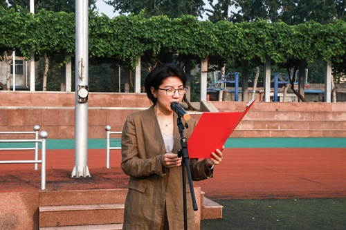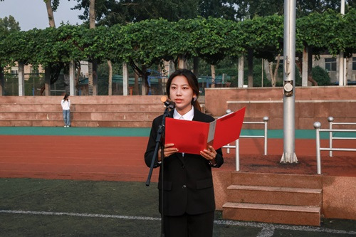 紧接着,李璐作国旗下讲话。她带领大家重温一百多年的伟大党史和习近平总书记对广大青年的谆谆教导。作为新时代新青年,她对大家提出几点希望,一要怀揣理想,勇于担当;二要奋斗拼搏,力量万丈;三要传承荣光,扬帆起航。她强调,今年是新中国成立75周年、五四运动105周年,同学们要继续传承和发扬五四精神,勇担时代重任,勇于担苦、担难、担重,勤学苦练本领,敢闯敢试,敢为人先,全面提高综合素质和能力,奋力书写为中国式现代化挺膺担当的青春篇章。