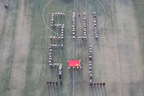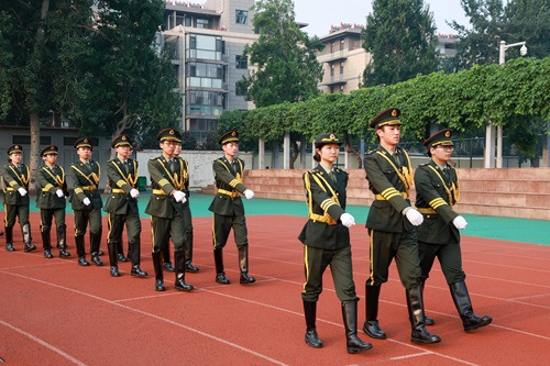 伴随着一声声响亮的口号,国旗护卫队迈着稳健的步伐护送国旗入场。在《义勇军进行曲》激昂的旋律中,全体人员面向国旗齐声高唱国歌、行注目礼,在这庄严的时刻向祖国表达最深厚的敬意。
