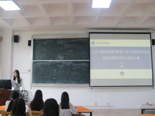 各宿舍代表依次上台答辩。答辩过程中,各宿舍就温馨氛围、学习成就、活动荣誉三个方面,采用视频、ppt等形式对宿舍风采进行展示。大家充分领略到文学与新闻传播学院学子朝气蓬勃、团结友爱、积极进取的精神风貌,答辩现场气氛热烈、高潮迭起。