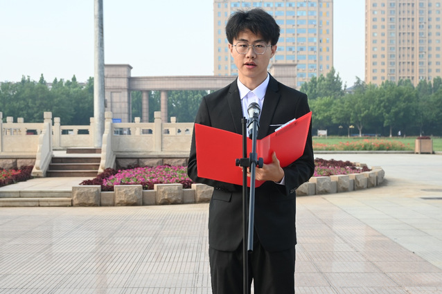 升国旗后,学生代表连康作“传承爱国精神,引领时代风尚”主题演讲。他提到,弘扬爱国主义精神,要坚定理想信念;要勤奋学习,提升自身素质和能力;要敢于担当,积极投身到国家和民族发展的伟大事业中去。他呼吁以更加饱满的热情、更加坚定的信念、更加务实的作风,弘扬伟大爱国主义精神,以改革创新为核心的时代精神为指引,不断开拓前进的道路。