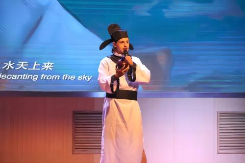 随后,山东省中华经典诵读大赛校级选拔赛学生组决赛正式开始。在主持人介绍完评分规则后,本科生、留学生参赛选手依次上台朗诵。伴着悠缓的音乐,选手们以饱满的热情、激昂的语言、大方的举止诵读中华经典名作,彰显了中华语言的独特魅力和中华文化的博大精深,展现了当代学生积极向上的昂扬风貌。
