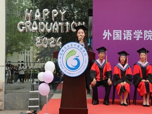 学院党委书记李静致辞。她代表外国语学院全体师生向2024届毕业生顺利毕业表示热烈祝贺,并对毕业生四年来的努力予以了充分的肯定。她向全体毕业生提出三点希望和嘱托:一要坚持终身学习,秉承外院学子“不断创新,追求卓越”的不懈斗志;二要勇担社会责任,传承外院学子“胸怀祖国,服务人民”的优良品格;三要永葆进取之心,继承外院学子“立志笃行,脚踏实地”的优良传统。内外兼修,扬外语人之风采;中西贯通,融世界之精华。希望全体毕业生牢记嘱托,用热血与汗水谱写属于自己的青春华章,在推进中华民族伟大复兴的时代洪流中找寻奋斗的方向,实现人生价值。