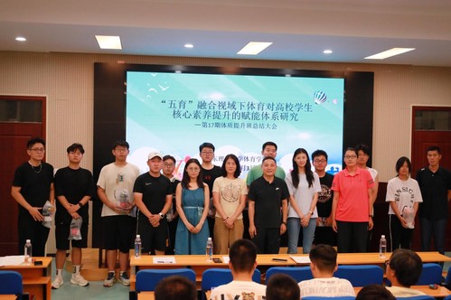 (据体育学院报道)为促进学生身心健康和切实提高学生身体素质水平,7月3日,我院于2教101会议室举行第17期体质提升班总结会,学院副院长杨刚,公共体育教学部主任郭涛,体质提升班指导教师崔蓓蓓、张少华、宋玉洁、于铭浩以及体质提升班全体成员参加。会议由郭涛主持。