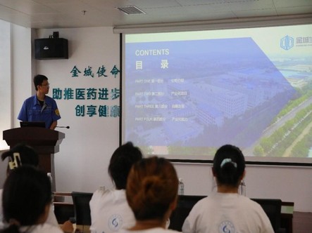 首先,工程师对于实践团的到来表示欢迎,他带领实践团成员来到会议室进行座谈交流。实践团了解到,金城医药是一家涵盖医药中间体、特色原料药、终端制剂三个重点领域,集药品研发、生产、销售于一体的医药企业集团,主要产品涉及抗感染类、妇儿专科类、肝病类、消化类及营养保健品等多个领域,致力于为客户和大众提供高品质的医药健康产品,持续提高产品可及性,改善大众生活质量,成为医药健康领域广受尊重的企业。金城生物是全球最大的谷胱甘肽原料药生产商,国内首家将谷胱甘肽产业化公司,并主导起草了谷胱甘肽原料药国家标准。品牌定位是通过绿色成熟的合成生物学技术及产业化创新能力,开发并生产生物大健康领域的系列化学品,为全球客户带来超乎预期的价值,持续造福社会。