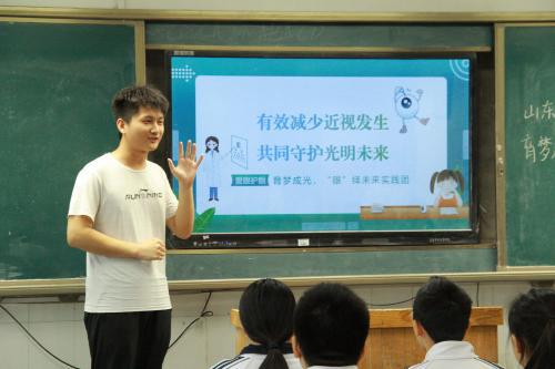 (据法学院报道)为深入贯彻落实习近平总书记关于青年工作的重要思想,以青春建功的实际行动为祖国发展贡献青春力量。2024年7月13日,山东理工大学“育梦成光,'眼'绎未来”实践团走进聊城市实验中学开展爱眼护眼知识进课堂等科普宣传实践活动。通过和同学们的交流,感悟我国眼睛保护工作新成就。