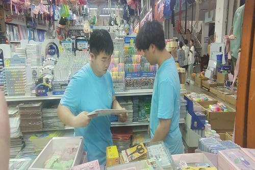 上午,七月蜜蜂实践团周长旭、杨少奇、陈海涛在义乌商场为福利院儿童购买制作标本的工具,为保证孩子们有良好的标本制作体验,从而留下深刻印象,提高孩子们的幸福感,丰富他们的乐趣,三人认真挑选所需要的工具。